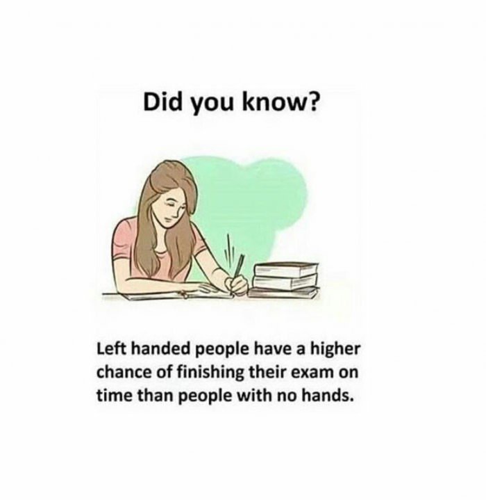 У левшей больше шансов написать экзаменационную работу вовремя, чем у людей без рук. | ||||||||||